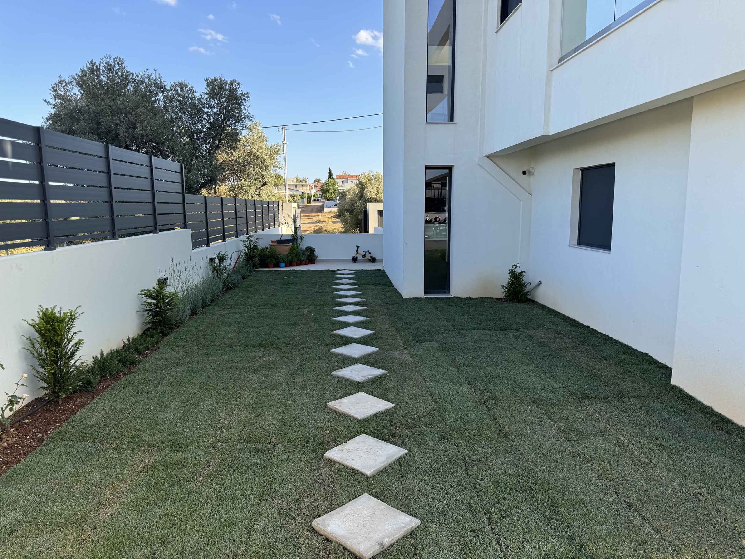 The rest two suites can accommodate 6 persons each in 3 bedrooms and there are also 3 bathrooms. In the fully equipped kitchen our guests can prepare – enjoy beautiful dinner next to pool and garden.